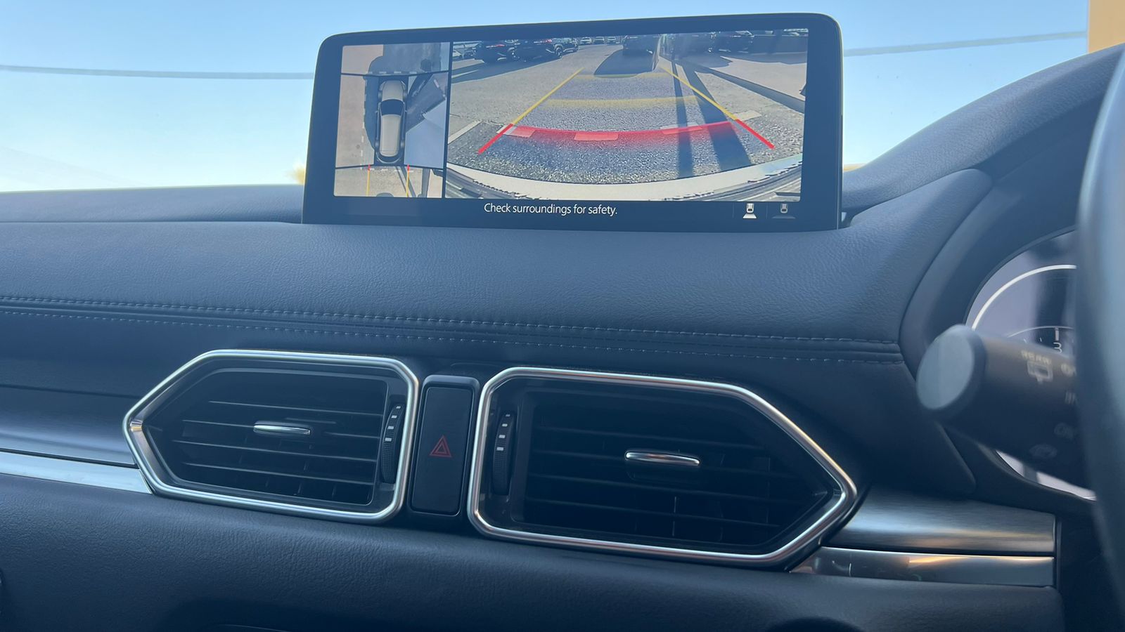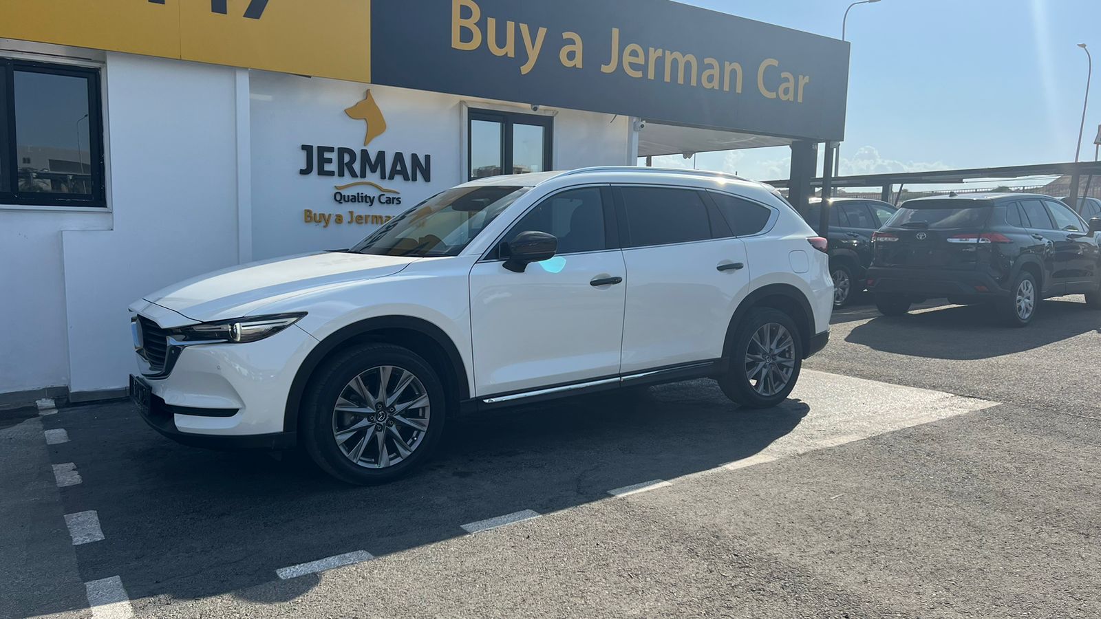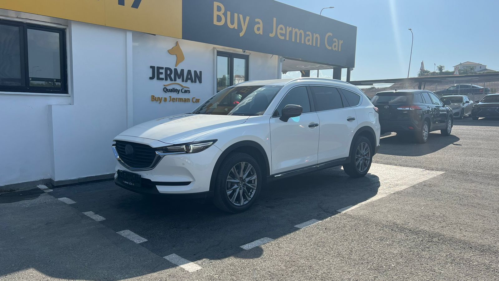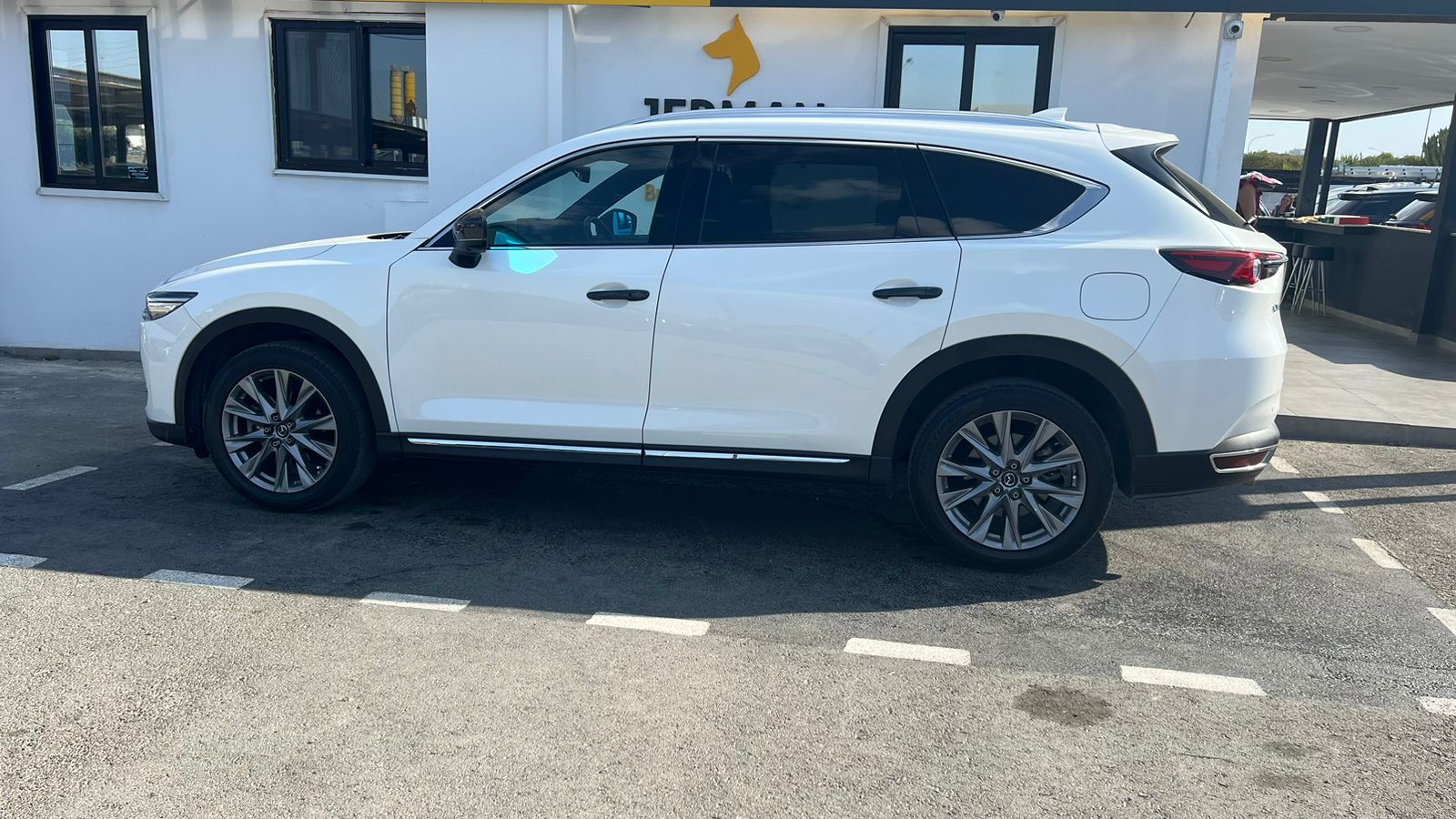 This Mazda CX-8 Proactive combines elegant design with advanced comfort and driver-focused technology. The interior shows high-quality leather details, a leather-wrapped steering wheel with multifunctional controls, and a premium stitched gear shifter. It offers a refined driving experience with practical features designed for convenience and safety. Ideal for families or long-distance driving, this is a practical yet elegant choice.