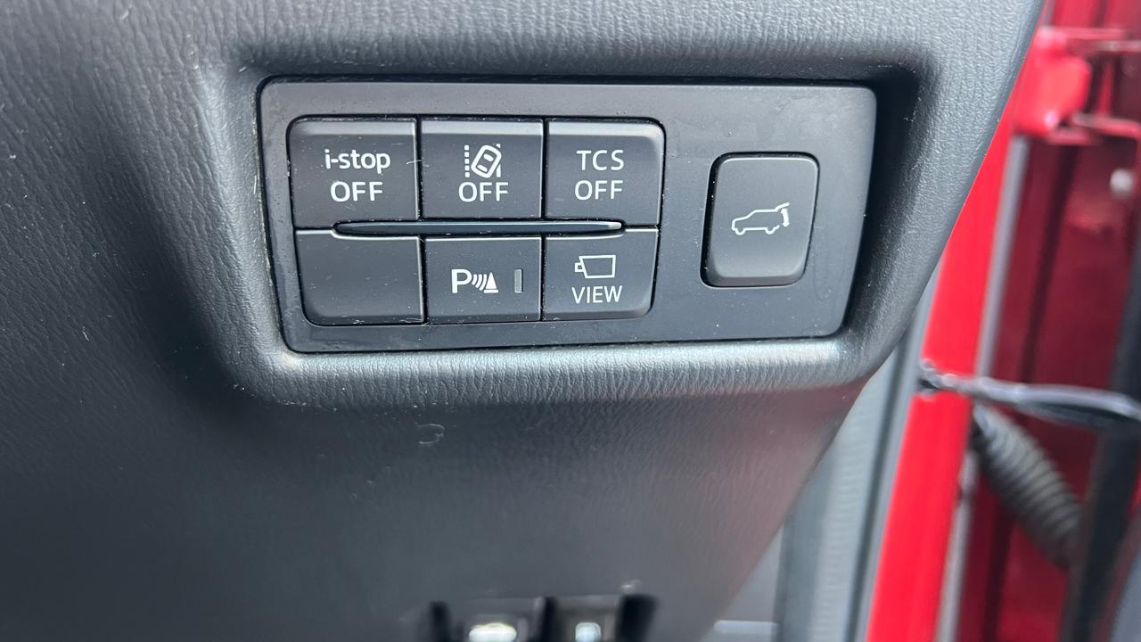 - Drive Assistance Buttons: i-Stop, traction control (TCS), lane departure alert, parking sensors, view camera toggle, and powered tailgate.